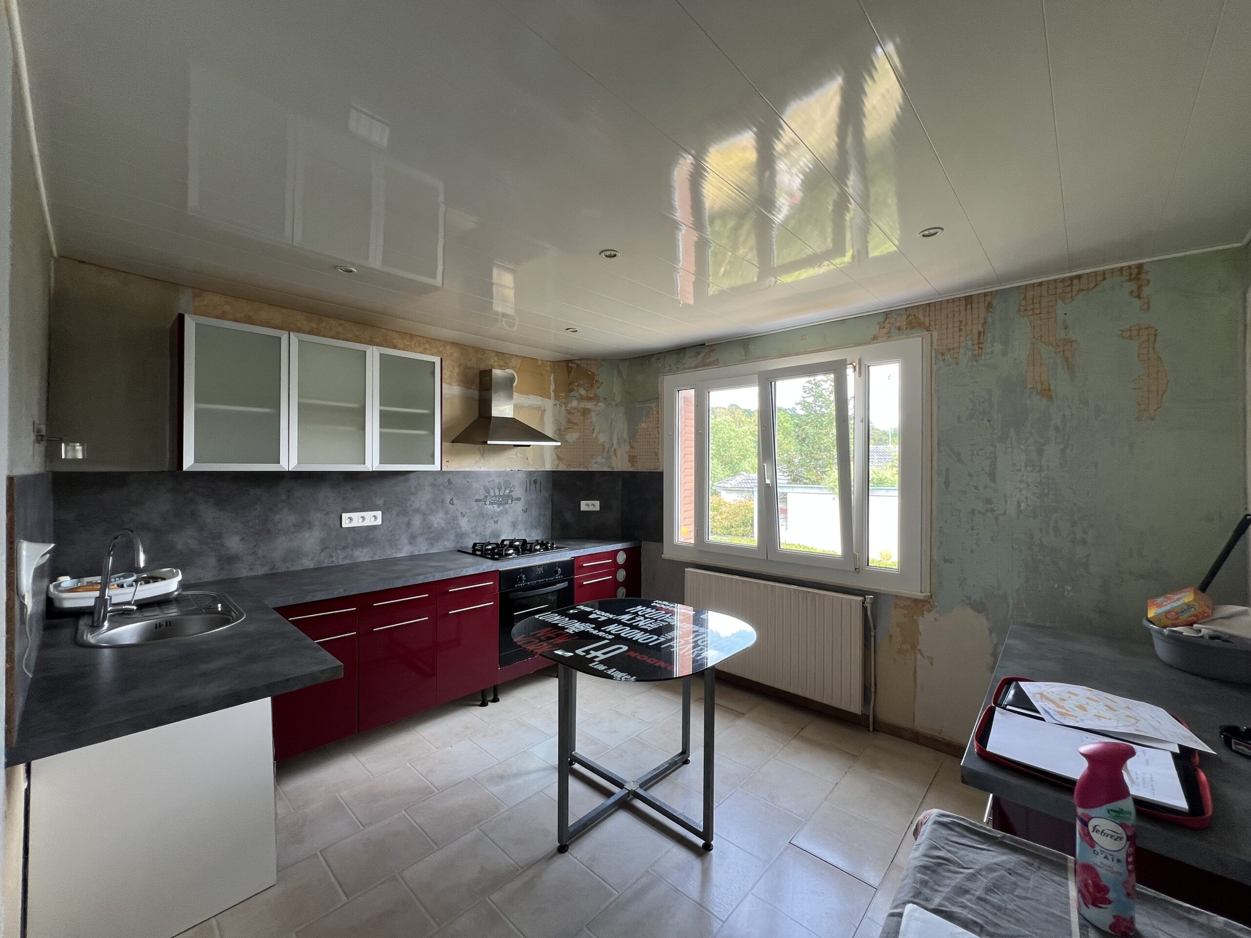 La maison est chauffée au gaz mais dispose d'une extraction pour installer un poêle à bois ou a granulés.