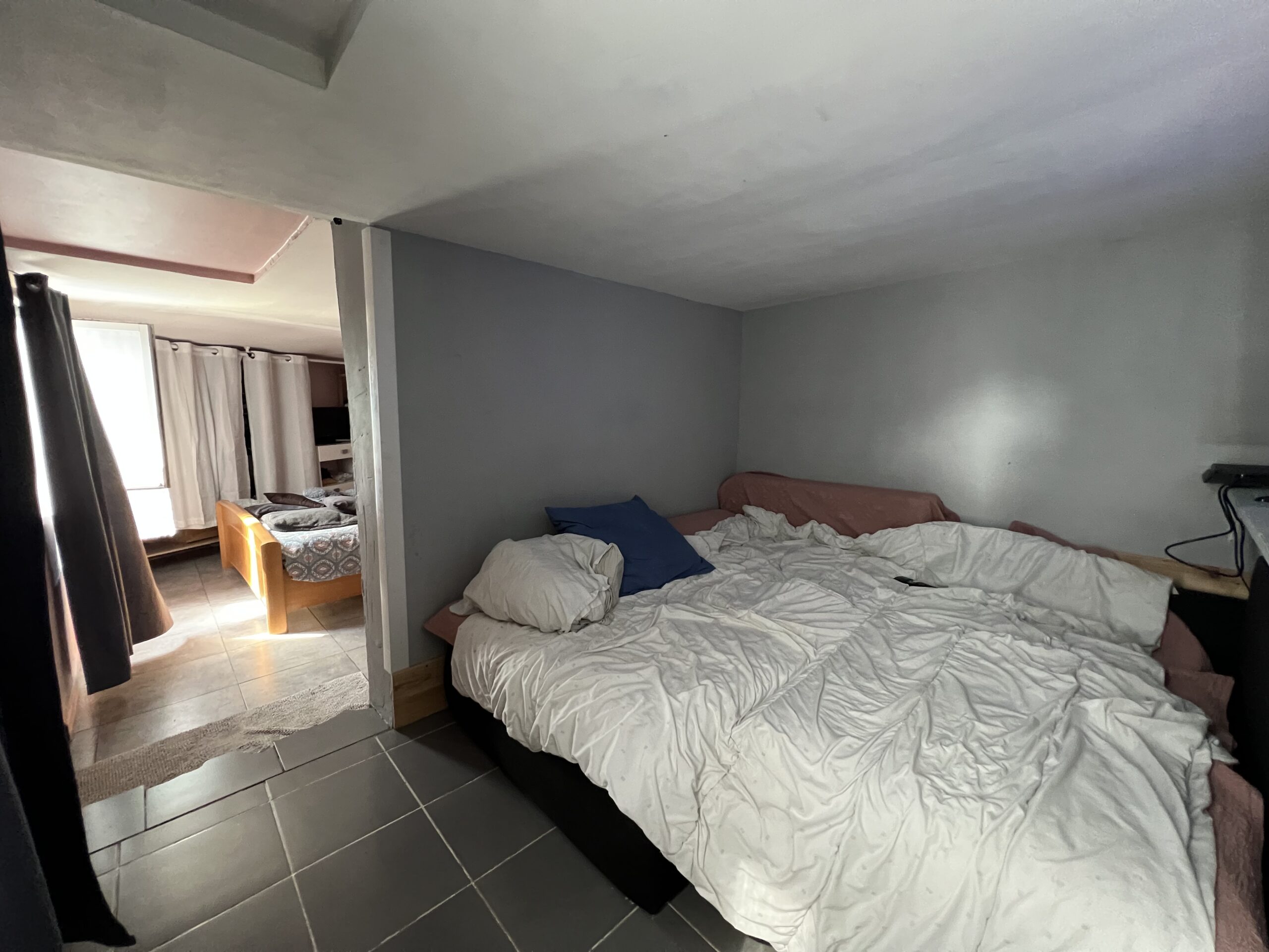Elle dispose d'une cuisine, un coin salon, une chambre et une salle de bains avec douche et WC. Système de chauffage au bois.Prise de rdv pour les visites et informations uniquement par téléphone.